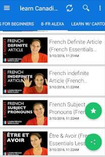 - Pelajari Perancis Kanada dengan pelajaran gratis setiap hari. Mari Mondly mengajarkan bahasa Perancis Kanada dengan cepat dan efektif. Dalam beberapa menit saja Anda akan mulai menghafal inti kata-kata Perancis Kanada, kalimat bentuk, belajar berbicara frase Perancis Kanada dan mengambil bagian dalam percakapan.