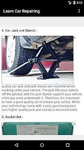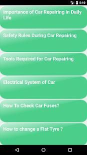 Learn Car Repairing app teaches you basic idea about car, it's Components & Tools.