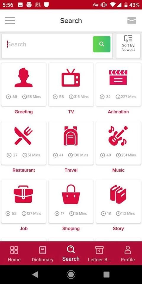 Learn English provides this unique ability for you to go through hundreds of video and audio contents based on a specific condition or a place to search your needs by using built-in reach features.