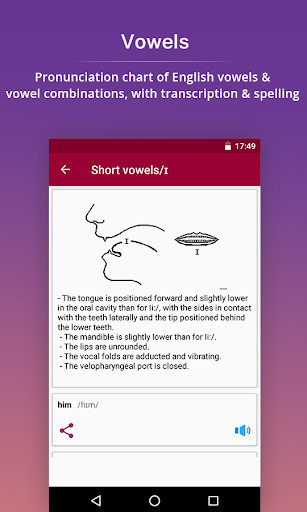 ** Periksa prosiasi Anda: - Pengucapan mengajarkan Anda cara mengucapkan bahasa Inggris dengan benar dan juga memeriksa pengucapan Anda (fonetik) untuk memastikan Anda melakukannya dengan benar.