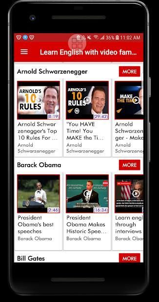 Learn English with Video Famous People is an application to learn English through videos with more than 1000 videos and 20 categories that will help you improve your English everyday