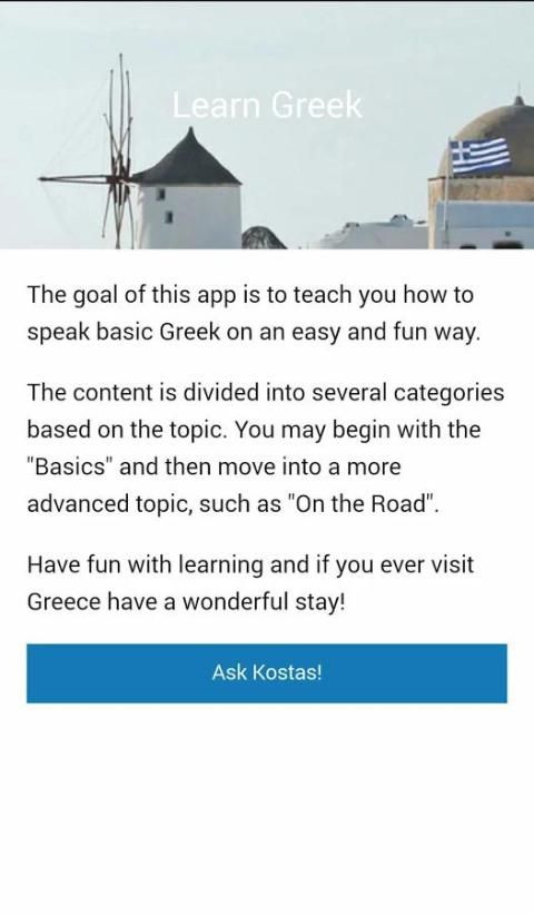 This is the initial release of "Learn Greek", the PRO version of the free Android app "Ask Kostas and learn Greek".