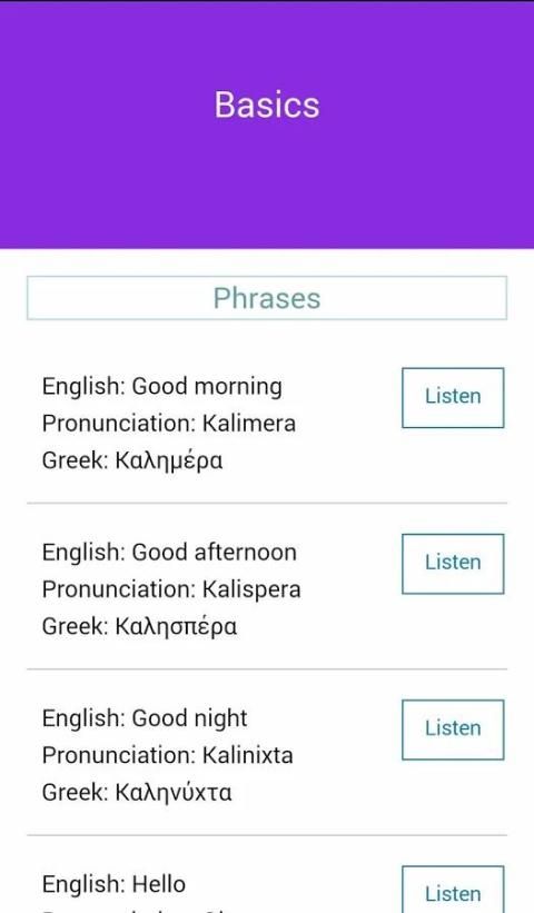 Tujuan dari aplikasi ini adalah untuk mengajarkan Anda bagaimana untuk berbicara bahasa Yunani dasar tentang cara yang mudah dan menyenangkan.