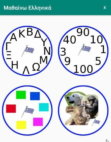 Ini adalah aplikasi utama. Di sini Anda dapat melihat semua modul kecil untuk belajar bahasa Yunani.