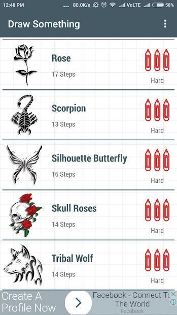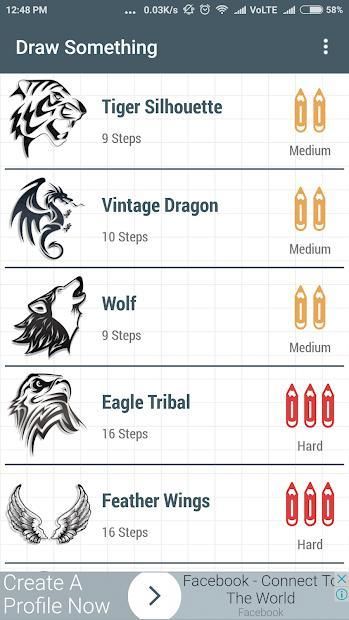 Setiap gambar dibagi menjadi beberapa langkah, dan mudah untuk mengikuti sehingga aplikasi ini menunjukkan Anda cara menggambar tato langkah demi langkah mudah.