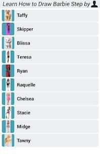 This Apps is a step by step instruction which will teach you How to Draw Barbie. Like a personal art teacher, it will teach you how to draw dozens of different objects step by step and create amazing design, you can choose a character that you like and start to draw it.