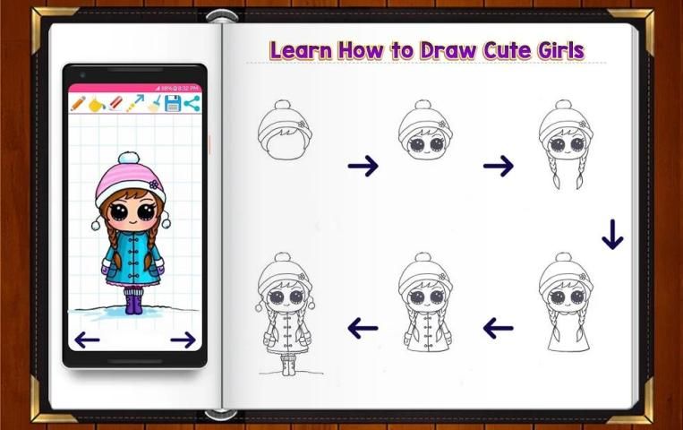 Learn How to Draw Cute Girl Characters is a fast and simple step by step guide for drawing your favorite cute girls from all around the world. Its step by step instructions improve creativity and confidence in your young ones while drawing their favorite chibi cute school girls, fashoin girls, sport girls, beach girls, bridal girls, doll girls etc.