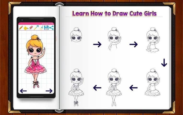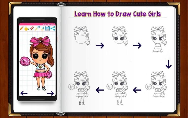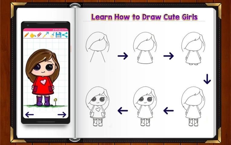 Learn to Draw cute famous girls drawing and sketches application for kids will show you how to draw cute girl characters drawing with easy to follow and simple step by step drawing instructions. The following tutorial will guide you through the steps with easy geometric shapes, letters, and numbers.