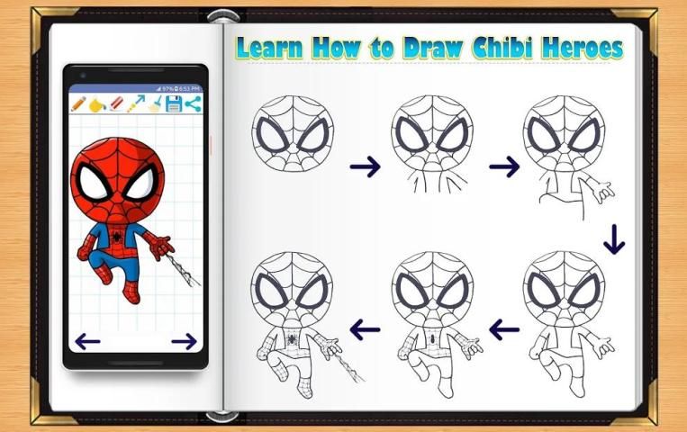 If you want to draw amazing super hero from your favorite movie and cartoon but you did not know how to draw, no worries. This drawing tutorial for kids application will provides some of adorable chibi super hero drawing step by step and don't need any special skills, it’s self-teaching.