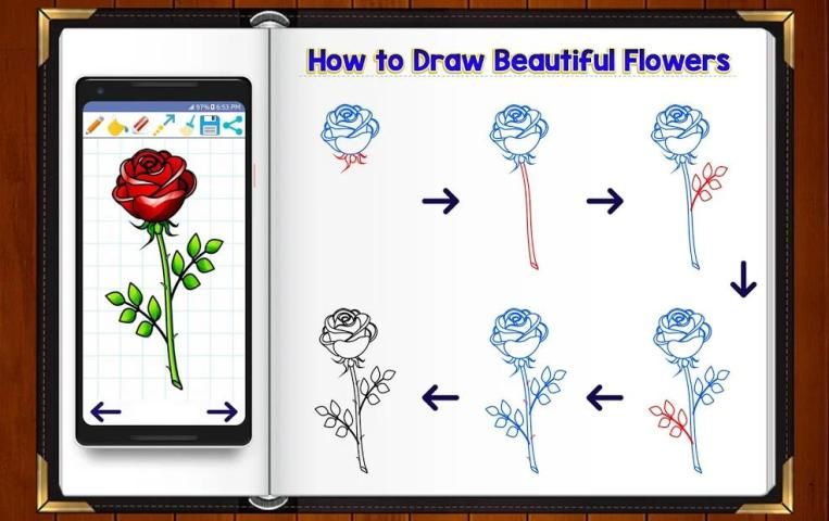 Learn to Draw Flowers drawing and sketches application for kids will show you how to draw world top famous flowers drawing with easy to follow and simple step by step drawing instructions. The following tutorial will guide you through the steps with easy geometric shapes, letters, and numbers.