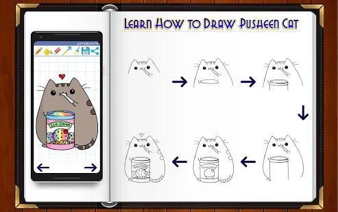 How to Draw and Color Pusheen Cat Characters is a personal art teacher, it will teach your how to draw your dream pusheen kitty character in easy steps.