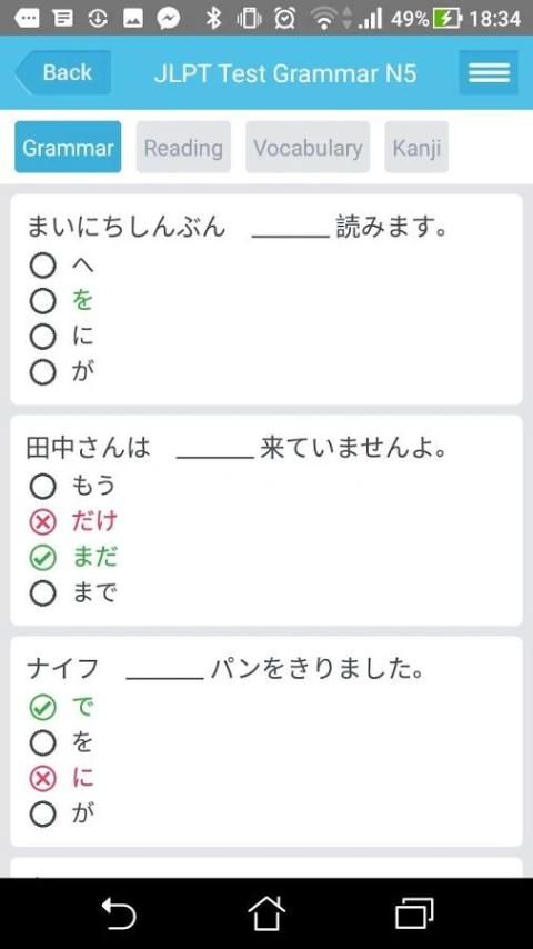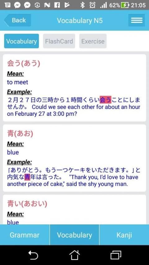 Pada bagian kosakata Anda dapat belajar kosakata Jepang melalui flashcards menggabungkan kuis kosakata akan membantu Anda berlatih dan mengingat lebih lama.