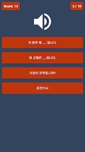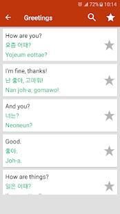 If you are trying to learn how to speak and read Korean this education app for you. You learn through a variety of topics: Greetings, Introductions, Frequent sentences, Directions, Weather, Doctor, Market, Numbers, Problem, Transportation, Question, Feelings, Hotel, Shopping, Restaurant, Time, Date, Sports, Colors, Animals, Body, Travel and nature, School, Astrology, Interview, Car, Work.