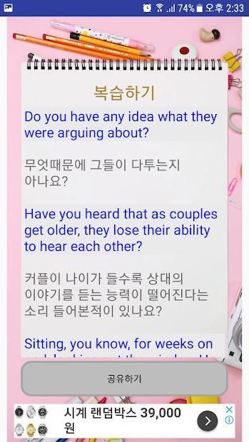 쉐도잉 연습을 할 때 가장 주의해야 할 점은 해석할려고 하지 않는 것입니다. 그냥 듣고 따라 읽는데만 집중하면 됩니다.