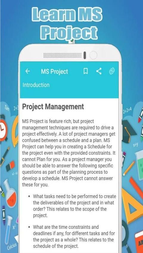 Aplikasi tutorial MS Project ini berisi banyak hal yang akan menambah pengalaman belajar Anda.