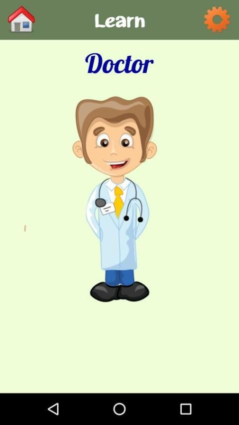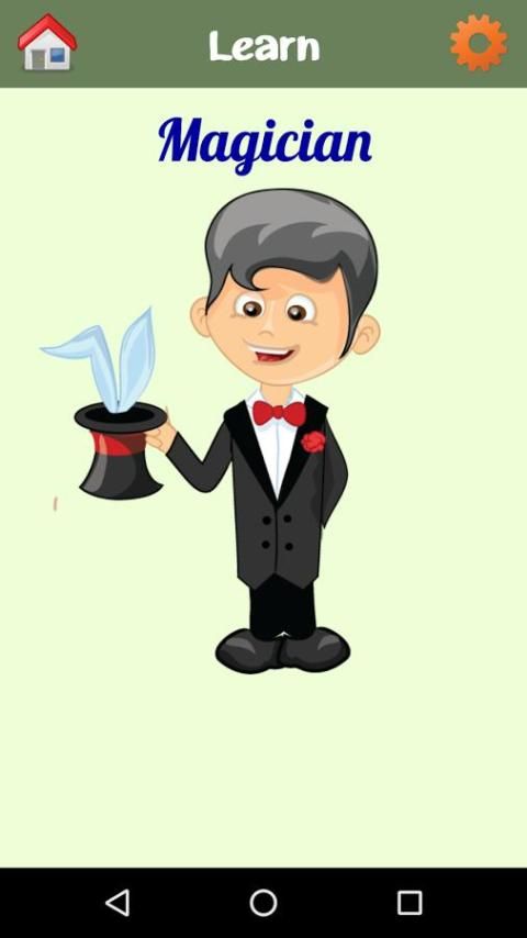 aplikasi pendidikan memperkenalkan berbagai profesi populer untuk anak-anak Anda. Memiliki flashcards warna-warni dan tinggi