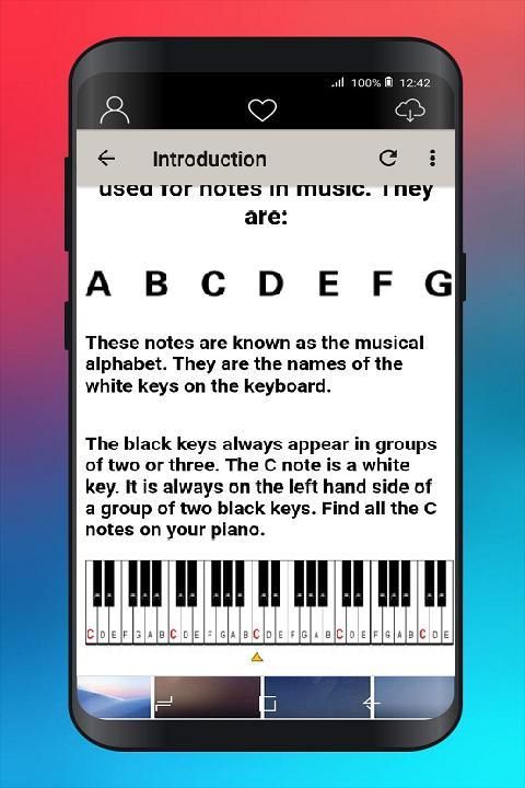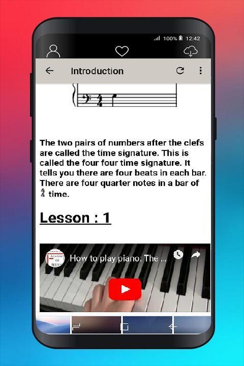 This application help you to learn step by step some techniques about How To Learn Play Piano FROM ZERO TO BE A PROF.