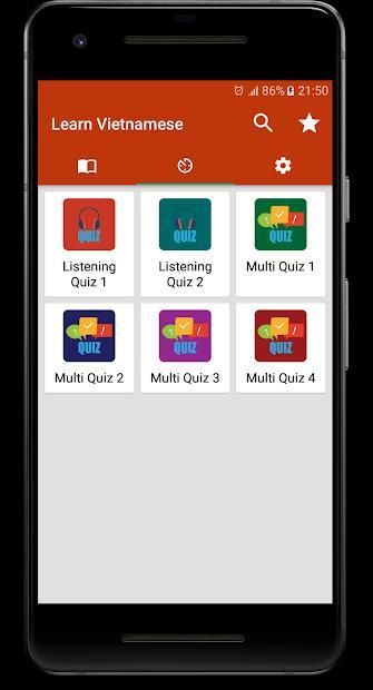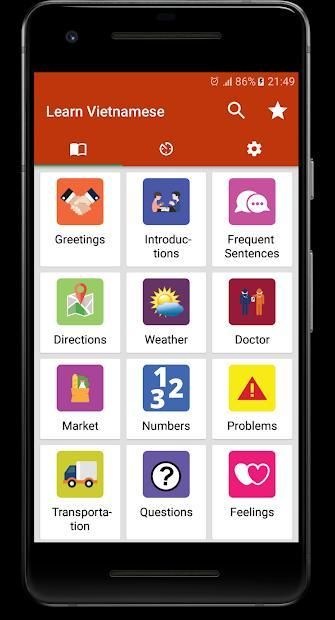 If you are trying to learn how to speak and read Vietnamese this education app for you. You learn through a variety of topics: Greetings, Introductions, Frequent sentences, Directions, Weather, Doctor, Market, Numbers, Problem, Transportation, Question, Feelings, Hotel, Shopping, Restaurant, Time, Date, Sports, Colors, Animals, Body, Travel and nature, School, Astrology, Interview, Car, Work.