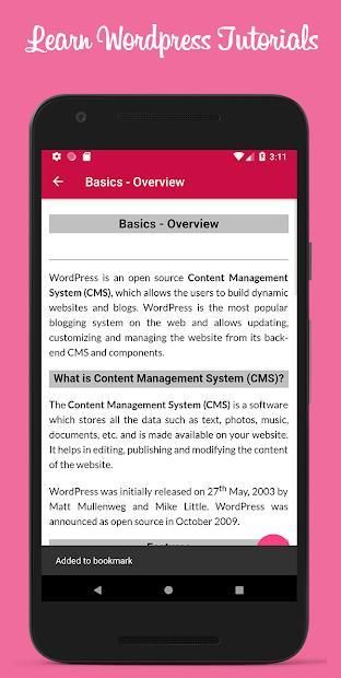 "Do you find difficulty in learning Wordpress? If so, you find the right application to learn Wordpress This app helps you learn Wordpress from basic to advanced. All tutorials are presented in a coherent and clear way for you to facilitate your learning. Here are some features in this app: