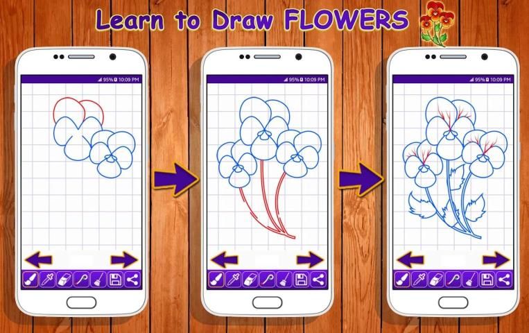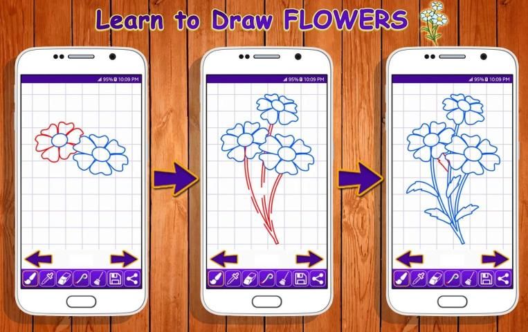 aplikasi bunga Menggambar akan menunjukkan cara menggambar menggambar bunga dengan mudah diikuti, langkah sederhana dengan petunjuk langkah menggambar. Tutorial berikut akan memandu Anda melalui langkah-langkah dengan bentuk yang mudah geometris, huruf, dan angka.