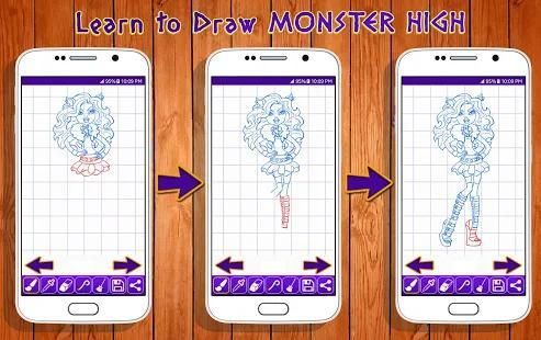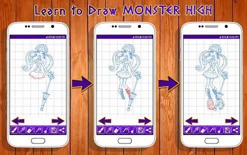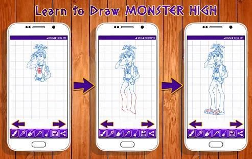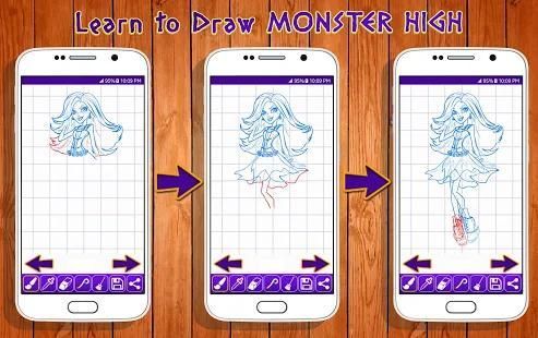 It also will show you how to draw an adorable Monster High Cartoon. This easy step by step drawing tutorial app will guide you through all of the steps. Happy Drawing :)