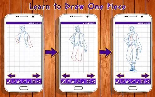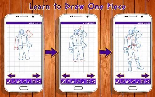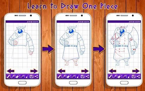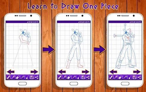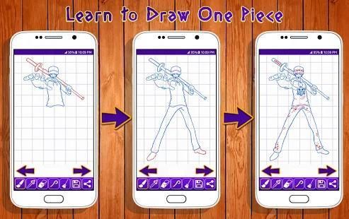 Aplikasi ini adalah kegiatan yang menyenangkan untuk mengajar cara menggambar karakter yang berbeda. Ini termasuk koleksi besar One Piece gambar Karakter diklasifikasikan berdasarkan tingkat kesulitan.