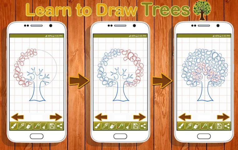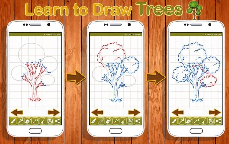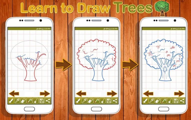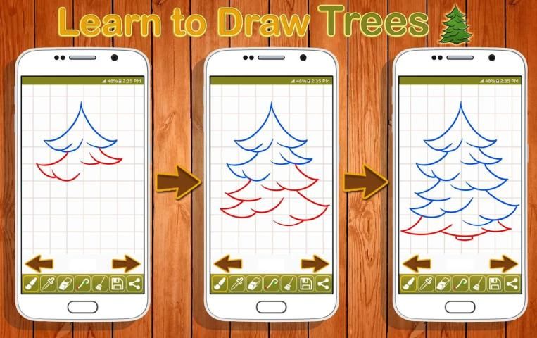 Aplikasi Menggambar pohon akan menunjukkan cara menggambar pohon dengan mudah diikuti, langkah sederhana dengan petunjuk langkah menggambar. Tutorial berikut akan memandu Anda melalui langkah-langkah dengan bentuk yang mudah geometris, huruf, dan angka.