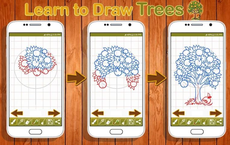 Jika Anda akan untuk menarik pohon tropis tetapi Anda tidak tahu cara menggambar, jangan khawatir. Aplikasi tutorial menggambar ini akan menyediakan beberapa indah dan menakjubkan pohon buah menggambar langkah demi langkah.