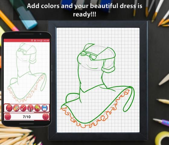 With this app, you can teach your kid how to draw. It includes large collection of princess dress drawings. You can create fantastic drawing in simple steps. Just take a pencil or paper, choose the dress that you like to draw and follow the steps or Draw on your phone. It is very easy to use.