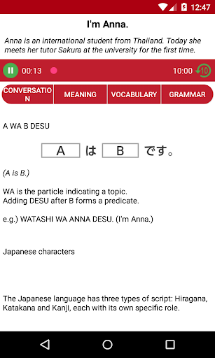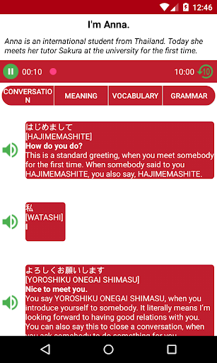 ""Learn Japanese Full Audio" include over 48 lessons, support over 8 languages, will help you improve listening and grammar skill
