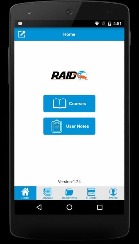 RAID LearnToScuba APP telah dikembangkan untuk mendukung RAID pengalaman pembelajaran online baik online dan offline untuk seluruh berbagai program studi yang menawarkan RAID.