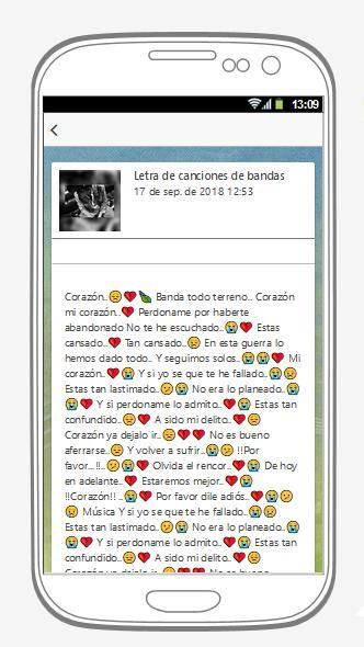 Letra de Canciones de Banda. Esta es una aplicación donde podrás encontrar una colección de canciones de banda y su respectiva letra, para facilitarte la vida aquí encuentras la letra completa de cada canción para tu necesidad, si quieres dedicar o más bien llevar serenata o simplemente sacar frases, dependiendo cual es el asunto amor o desamor, textos completos para ti. Cada cierto tiempo actualizaremos la información para que te actualice tú también.