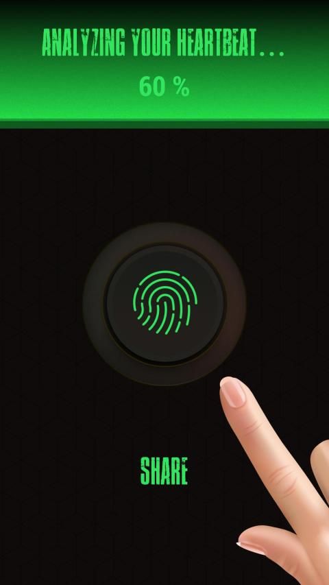 cukup dengan mengetuk dan menahan ruang sidik jari. Biarkan teman Anda menekan jarinya pada pemindai sidik jari dan kemudian aplikasi simulator Lie detector akan mensimulasikan untuk memindai dan menghitung hasilnya, benar atau salah.