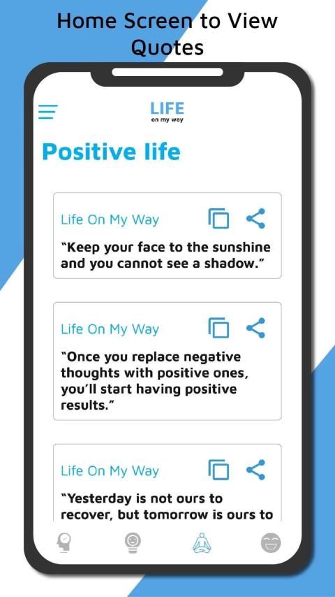Aplikasi Life On My Way dibuat dengan tujuan untuk memotivasi semua orang dalam kehidupan mereka sehari-hari. Kami telah menyediakan Status Berpikir Positif dalam bahasa Hindi dan Inggris
