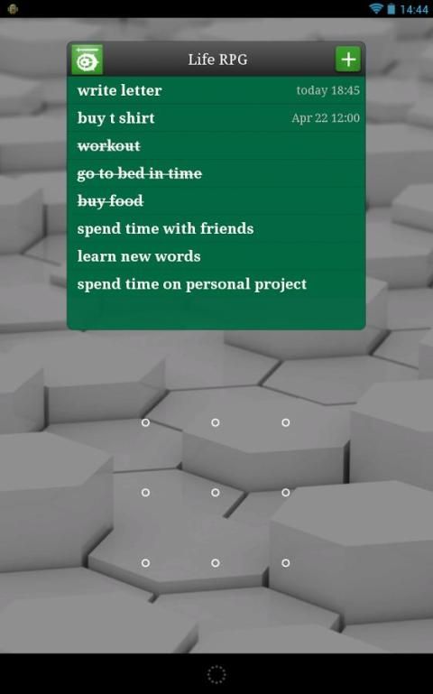 Layar "ToDo". Dengan bantuan Kehidupan RPG Anda dapat menjadwalkan todo Anda `s-menambahkan, menonton dan membuat mereka. Hal ini juga diberikan. Gunakan Hidup RPG sebagai asisten pribadi. Karena mekanisme pengingat, Anda tidak akan lupa untuk melakukan tugas. Pengguna dapat mengatur pengingat pada tanggal dan waktu tertentu pada hari minggu, seminggu sekali, sebulan sekali.
