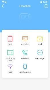 * Identifikasi dan buat kode QR dalam kategori berikut: teks, kartu nama, alamat web, email, telepon, pesan teks, wifi, aplikasi