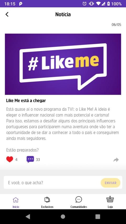 Nesta aplicação poderá aceder aos conteúdos do programa de uma forma bastante interativa! A área principal da aplicação contém vários destaques, os quais direcionam-o para as várias secções da aplicação, nomeadamente a feed de notícias, votações e concorrentes.