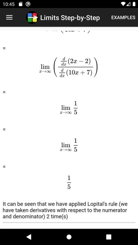 [✔] Berisi solusi terperinci untuk ekspresi di mana dimungkinkan untuk menerapkan aturan Lopital