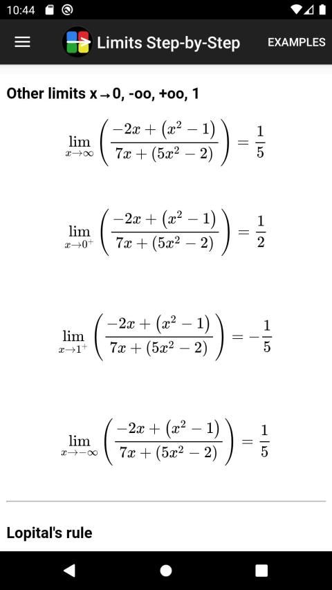 [✔] Contains detailed solution for expressions where it is possible to apply Lopital's rule