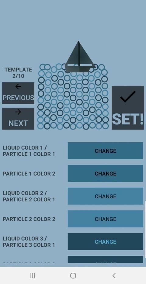 - more personalization options - change object and particles vector image (circles, stars, hearts, skulls, emojis & others), amount of the liquid or particles on the screen, object or particles size, overall brightness and more!