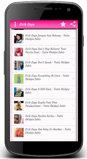 Aplikasi ini didesain sederhana, ringan, dan mudah digunakan, aplikasi ini berisi lirik lagu Fatin Shidqia Lubis.