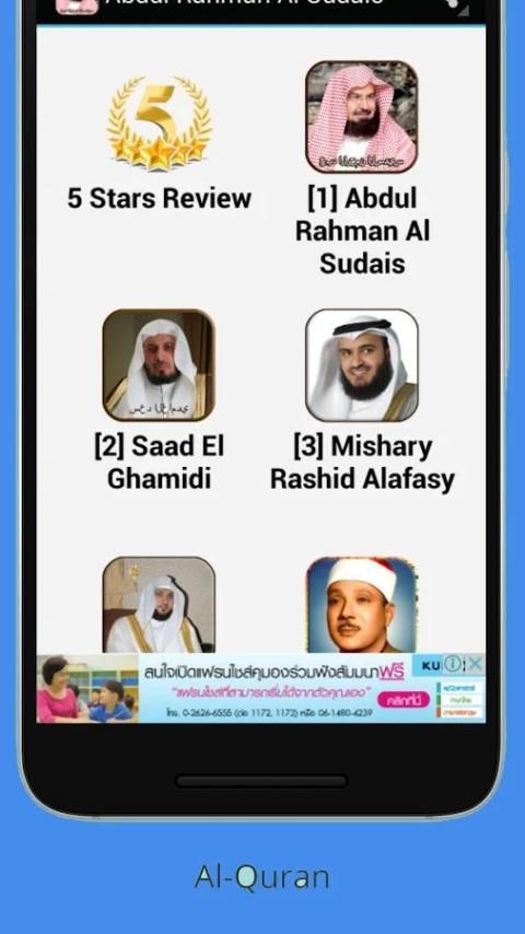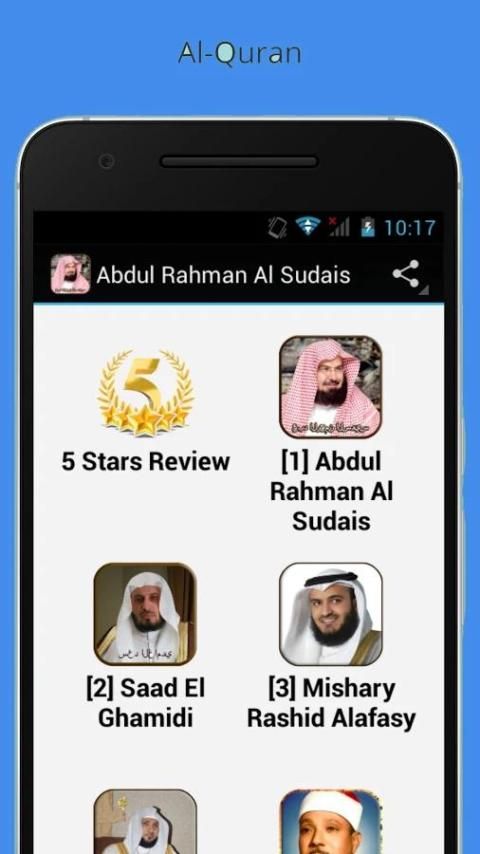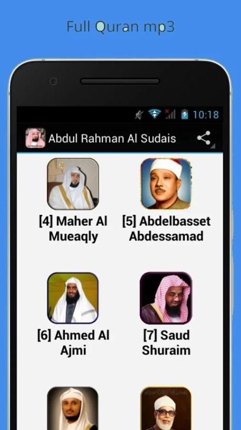 Abdul Rahman Alsudaes, Abdul Basit Abdul Samad, Abdur Rashid Sufi, Ahmed Al Ajmi, Abdulaziz Al Ahmad, Abdul Wadood Hanif, Abdulbari Ath Thubaity, Abdulmohsin Al Obaikhan, Ali Alhuthaifi, Abdullah Basfer, Ahmad Al Hawashy, Ahmed Saber, Abdullah Khayyat, Al Qari Yassen, Aleyoon Alkoshi, Abu Baker Shatri, Ali Jaber, Abdulmohsen Alqasim, Emad Zuhair Hafth, harga Abbaf, Hani Arrifai, Ibrahim Alakhdar, Jamal Shaker Abdullah, Khalid Abdulkhafi, Khalid Alqahtani, Khalifah Al Tonaeijy, Mahmoud Khalil, Muhammad Al Tablawi, Mahmood Al Sheimy, Mishary Al Afasy, Mustafa Ismail, Mustafa Al Lahoni, Mahmood Ali Albana, Mohammad Ayyub, Maher Al Muaiqly, Mohammed Al Minshawi, Mohammad Jibril, Mohammed Al Muhasny, Mohammed Siddiq Al Minshawl, Mohammad Al Abdullah, Mustafa Raad Al Azawi , Nabil Ar Rifai, Saudd Al Shuraim, Shirazad Taher, Salah Alhashim, Salah Bukatir, Shalah Al-Budair, Saad Al Ghamdi, Saud Al Shuraim, Sahl Yaaseen, Awfeeq Sebagai Sayegh, Yasser Al Mazroyee, Yahya Hawa dan Zaki Daghistani.