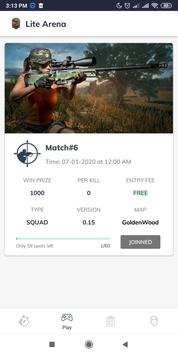 Lite Arena adalah sebuah aplikasi untuk memungkinkan player PUBG Mobile LITE bertarung satu sama lain di turnamen pnline Lite Arena bahkan dapat menjadi penghasilan tambahan untuk para gamer
