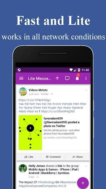 Lite Messenger - Mini Messenger adalah makan malam untuk membaca pemberitahuan dan umpan berita di telepon Anda, memiliki desain yang cantik dengan menu samping dan banyak fitur seperti aplikasi asli.