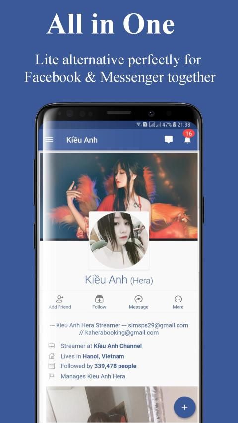 - Lite messenger have included Facebook and Messenger, do not require you to install separate Messenger.