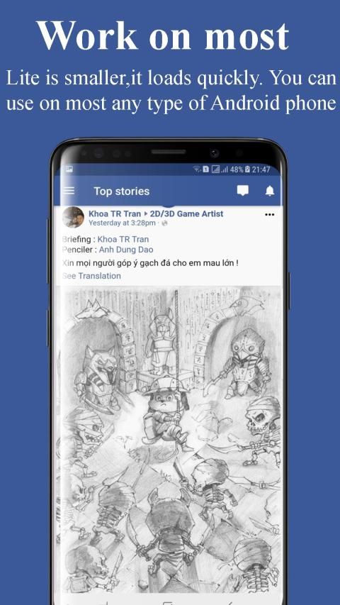 - Intergrated news feed, chat (messenger)... all in one Lite messenger app.