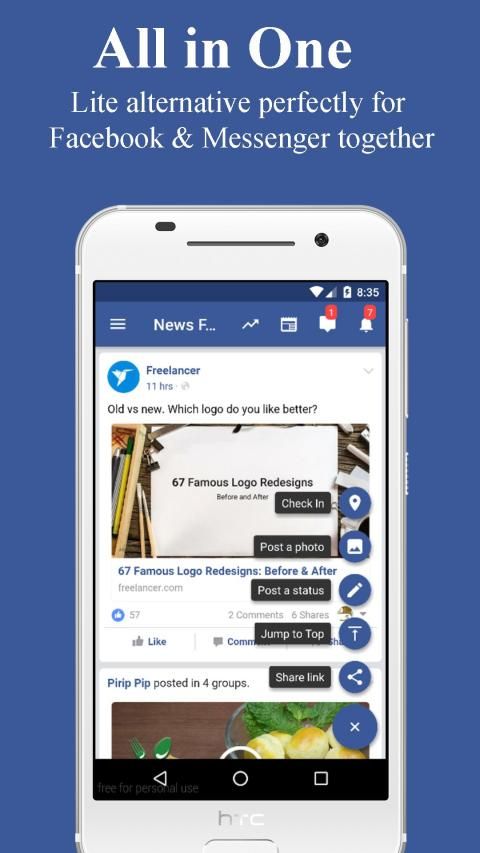 - Both Facebook lite and Messenger in a small app.