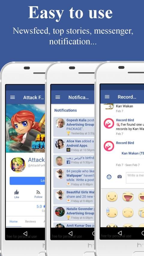 Lite Messenger is a free, customizable, fully functional, lite alternative for both Facebook lite and messenger which allows you to chat, call, video call with your Facebook friends, send emoticon, videos, images, gift, browse newsfeed, comments, etc... and protect your privacy.