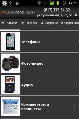 * Memungkinkan Anda untuk melihat berbagai toko-Mobile Cahaya (Lite-Mobile.Ru) tanpa meluncurkan browser;