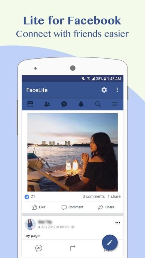 ★ Lite untuk Facebook adalah memulai dan menjalankan Cepat dan menghemat baterai dan memori.